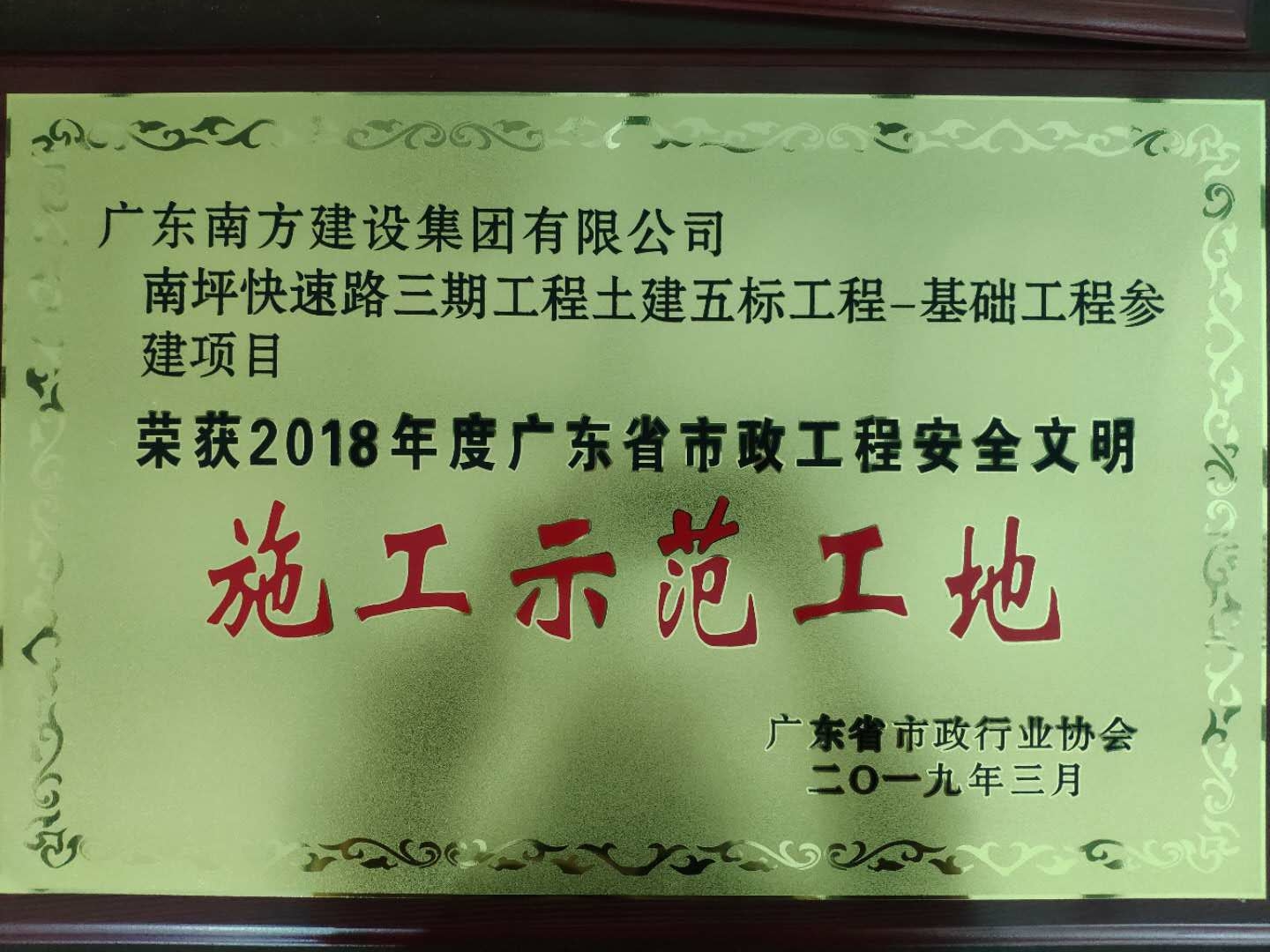 • 2018年度廣東省市政工程安全文明施工示范工地-南坪快速路三期工程五標工程-基礎工程