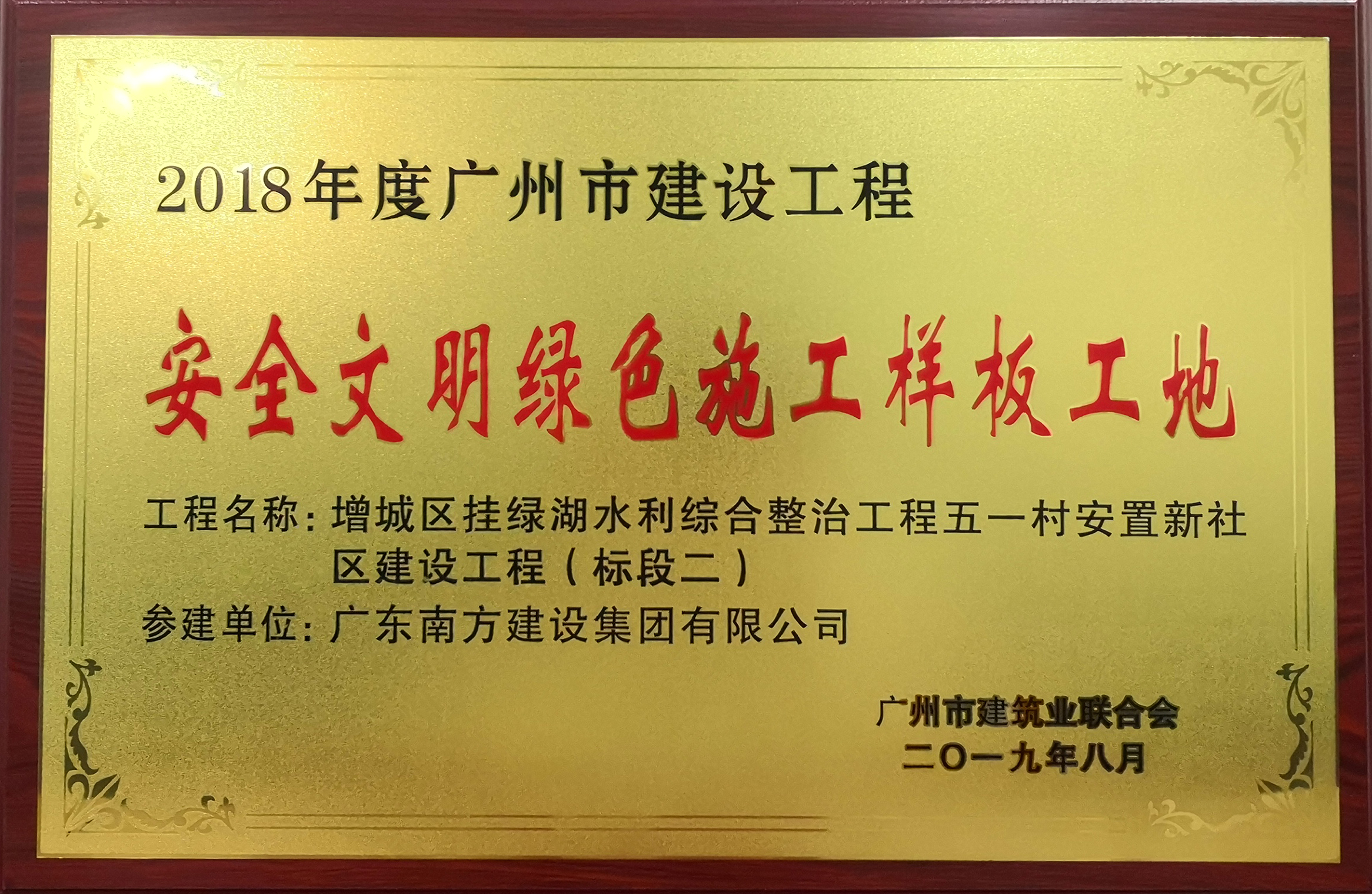 • 2018安全文明綠色施工樣板工地——增城五一安置新社區(qū)工程